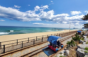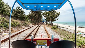 정동진 레일바이크는 정동진 해변을 따라 철길 위를 달리는 특별한 체험입니다. 2인승과 4인승으로 구성된 레일바이크는 정동진역과 모래시계공원을 순환하며 자연과 함께하는 여행을 제공합니다. 끝없이 펼쳐진 바다를 배경으로 자전거를 타며, 중간중간 사진을 남길 수 있는 포토존도 있습니다. 자연과 하나가 되는 특별한 경험을 즐기기에 안성맞춤입니다.