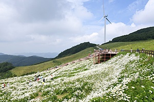 평창 육백마지기는 고랭지 채소 재배지로 유명했지만, 지금은 아름다운 경치와 꽃밭으로 많은 이들이 찾는 명소로 자리 잡았습니다. 비포장 도로를 따라 차를 타고 이동하며 경치를 감상하기 좋은 곳입니다. 9월에는 데이지 꽃밭과 함께 가을의 풍경을 만끽할 수 있으며, 인생샷을 남기기에도 최적의 시기입니다. 고요한 가을 풍경 속에서 특별한 추억을 만들 수 있습니다.